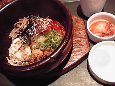 女ひとりでちょっとだけ刺激的なものが食べたくなったらぜひ。 なんと、日曜日の夕方にふらっと入ってしまいました・・^^; ここは一応、日本ですが、女性3~4名グループ(40代くらい?)はすでに 楽しげで・・一瞬、・・あれ?韓国か?・・と錯覚するくらいの雰囲気はありましたが。 (酔いしれるくらい、色々メニューがそろっているようです) そんな中、ビビンバ・・。 でもここなら入れます。冷静に考えたらお向かいは、チェーン店のうどん屋、杵屋さん。 そうです、ここの同系列店だったんですね!