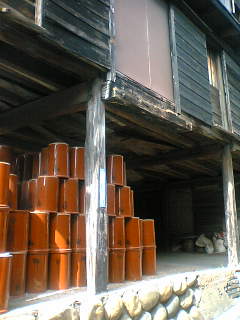 なんか、茶色の陶器が積んでありますよね。