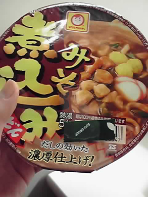 腹ごしらえは、マルちゃん味噌煮込みにて
